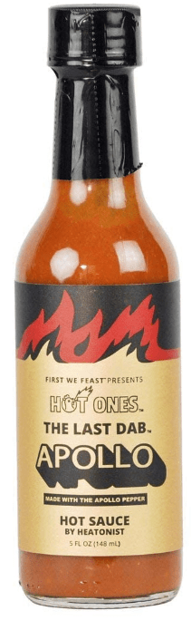 Finally, The Last Dab: Apollo from Hot Ones Hot Sauce, with a Scoville Heat Units rating that is yet to be announced, is a scorcher. Made with Smokin’ Ed’s Apollo Pepper in fresh, powdered, and pure chili distillate forms, this sauce is the hottest Dab ever. The distilled vinegar gives it a tangy edge, but the true star is the Apollo Pepper, which packs a serious punch. This sauce is not for the faint of heart, so be sure to have plenty of milk on hand if you give it a try.